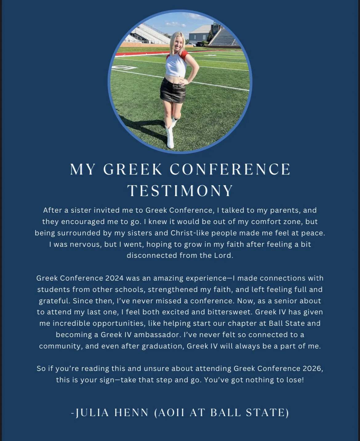 Here is some of the promotional content I’ve created that has been featured on the Greek IV national Instagram page, along with a recent testimony graphic that I designed independently for the platform.