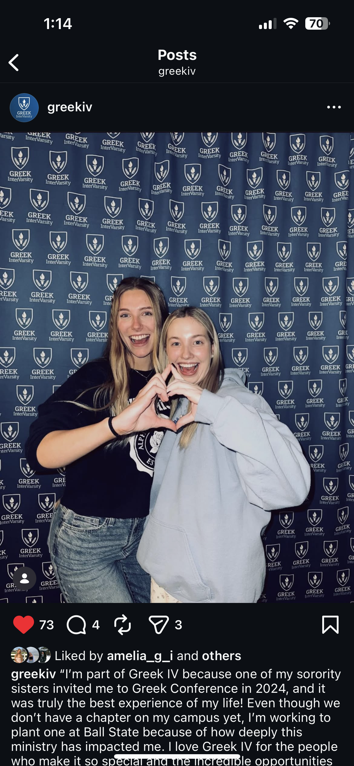 As a Greek InterVarsity (Greek IV) Ambassador, I promote the ministry on my campus while serving the larger organization. My responsibilities include creating promotional content for Greek IV’s national Instagram, attending monthly ambassador calls, and capturing media at events such as Greek Getaway and Greek Conference. This role allows me to combine my passion for media with serving a faith-based community.